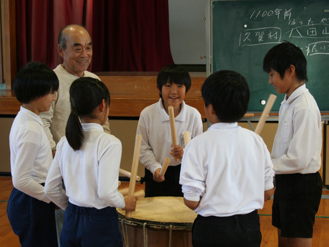久賀引山太鼓の歴史や一度途絶えた太鼓を復活させたことなど、