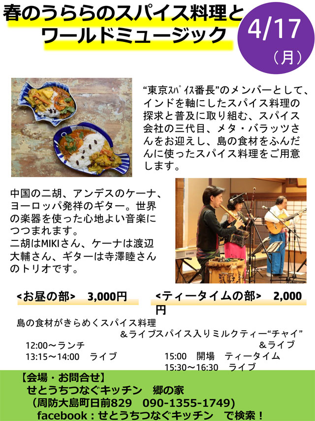 せとうちつなぐキッチン「春のうららのスパイス料理とワールドミュージック」