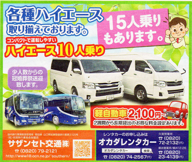 オカダレンタカーには、ハイエース(10人乗り・15人乗り)から、普通車