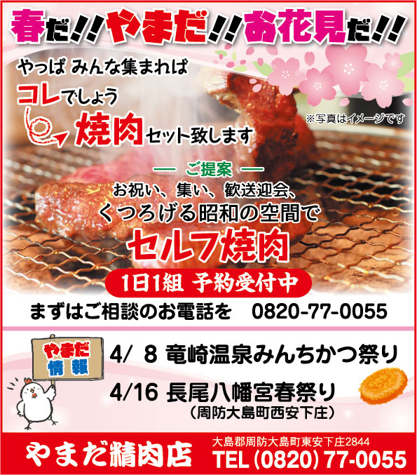 周防大島町久賀戎町 TEL(0820)72-0355 (西京銀行大島支店西となり) Web 地図