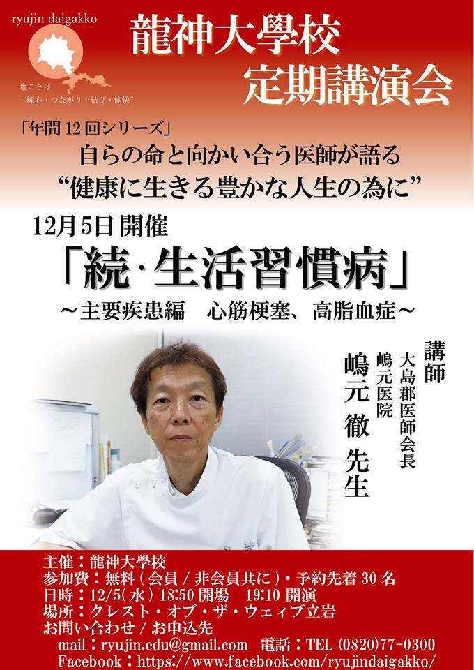 龍神大學校は、大島郡医師会長、嶋元徹先生を講師にお迎えして