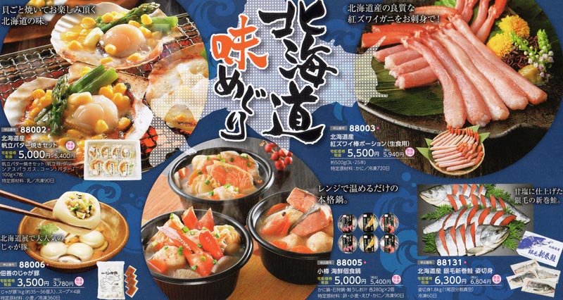 ズワイガニ・新巻鮭など北海道産の海の幸や人気のスイーツのほか