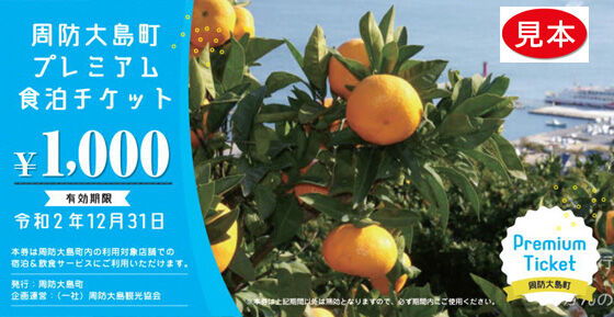 周防大島町では、食事と宿泊限定で2割のプレミアムが付くお得な
