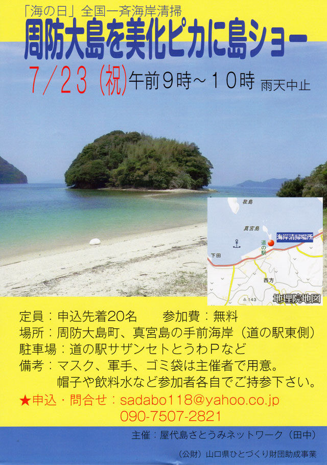 周防大島町西三蒲1100−4 TEL(0820)74-3806、090-9684-4094
