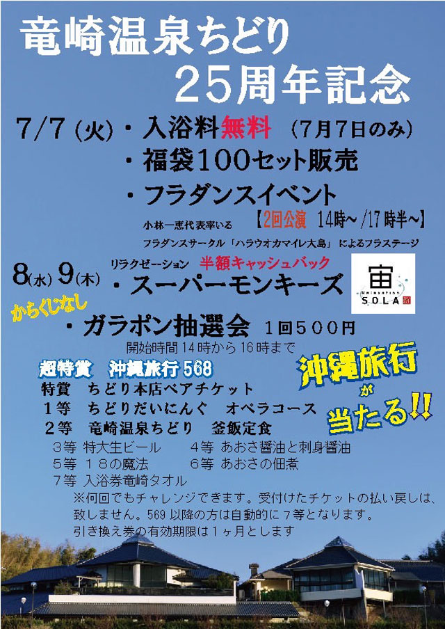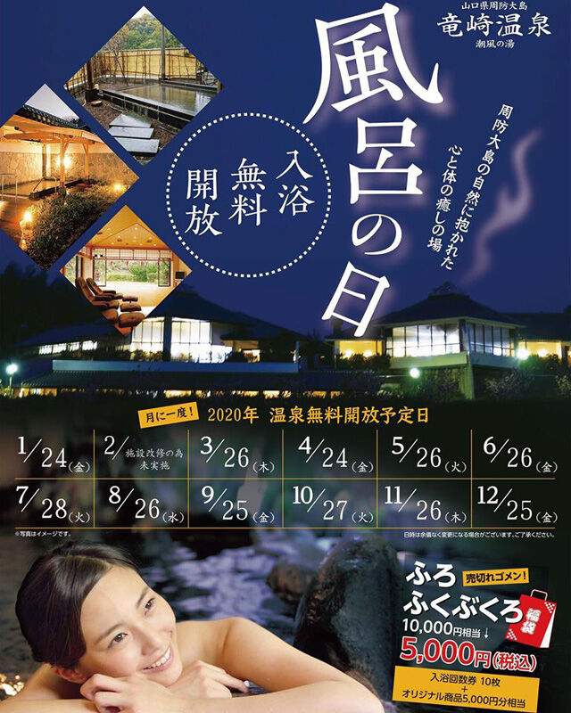 ちょうど7月28日(火)は、竜崎温泉が月に一度入浴無料開放される