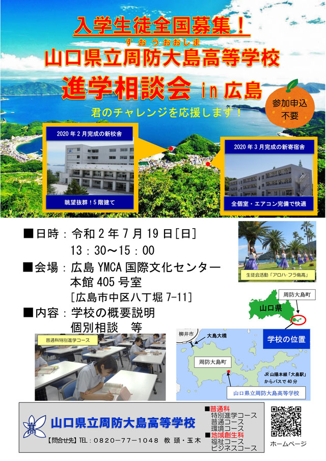 「周防大島高校 進学相談会 in 広島」のお知らせ
