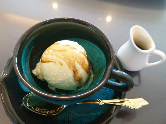 バニラアイスの上に島のはちみつとエスプレッソをかけた