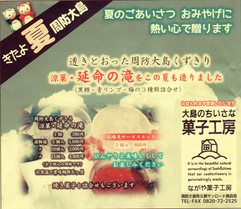 ながや菓子工房夏季限定の涼菓延命の滝は、周防大島町久賀にある