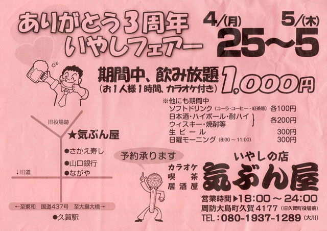 居酒屋気ぶん屋が、開店3周年を迎えました。
