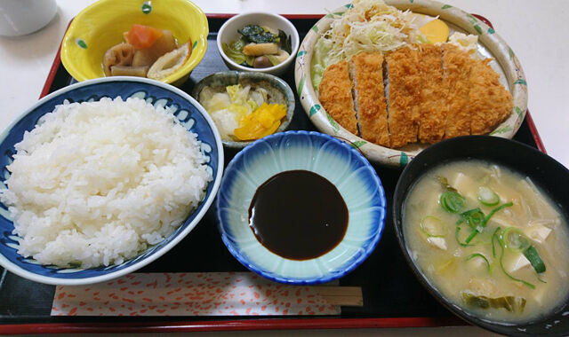 画像は、副菜も充実!ボリューム満点のとんかつ定食です。