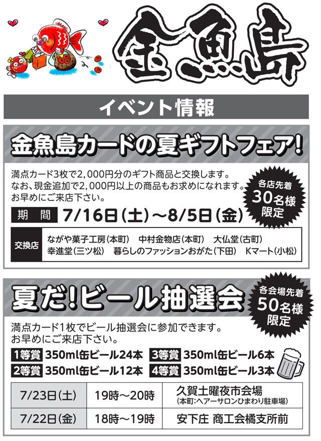 周防大島町久賀サンロード商店街 TEL(0820)72−0320 金魚島カード加盟店
