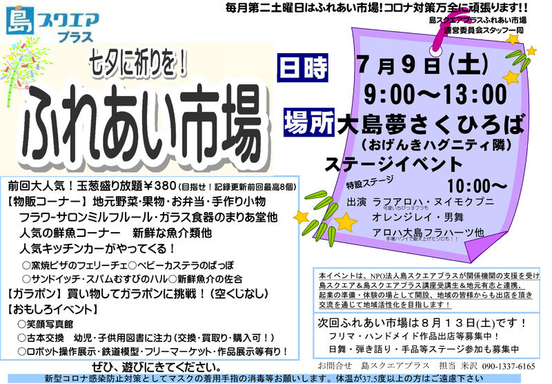 令和4年7月9日(土)9時から、おげんきハグニティとなりにある
