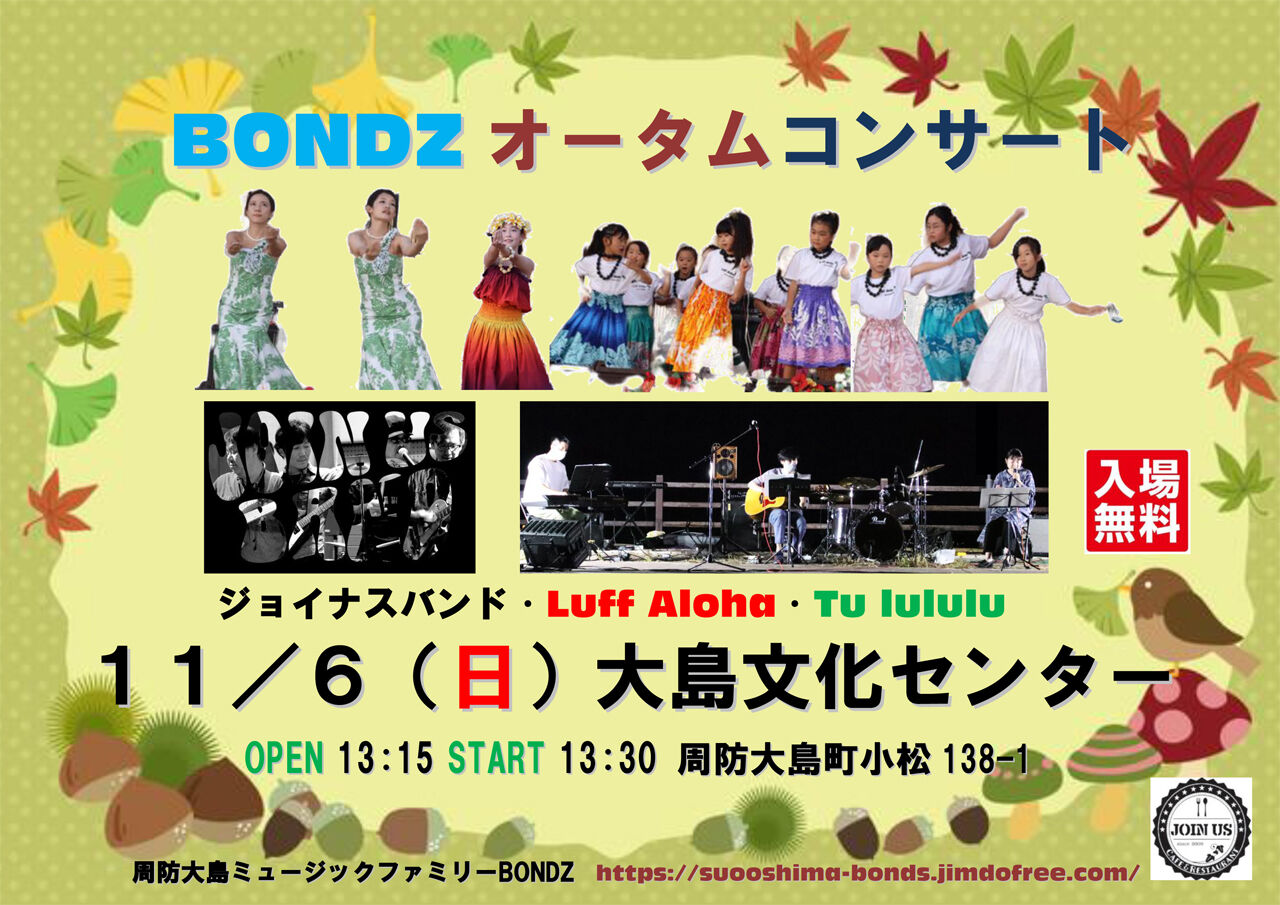 ラフアロハ、矢野書道会のほか、ジョイナスバンドも出演します。