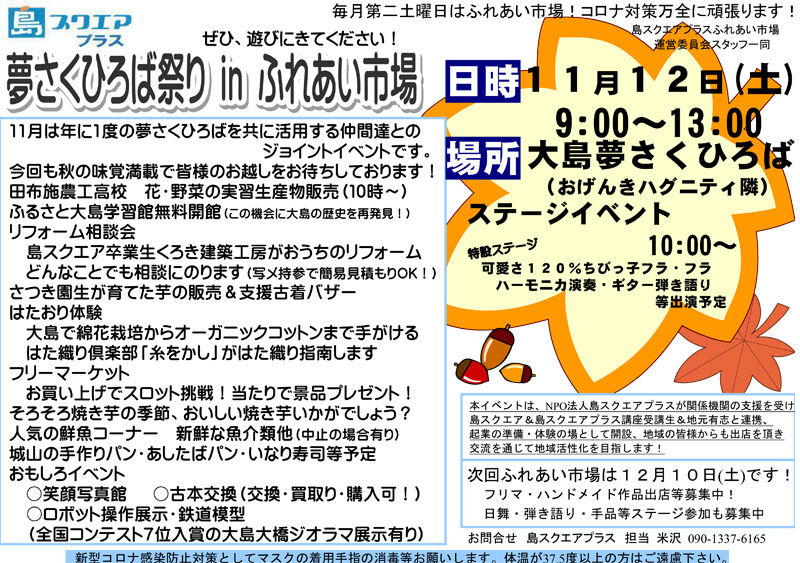 当日、フリーマーケットに出店して下さる方を募集しています。