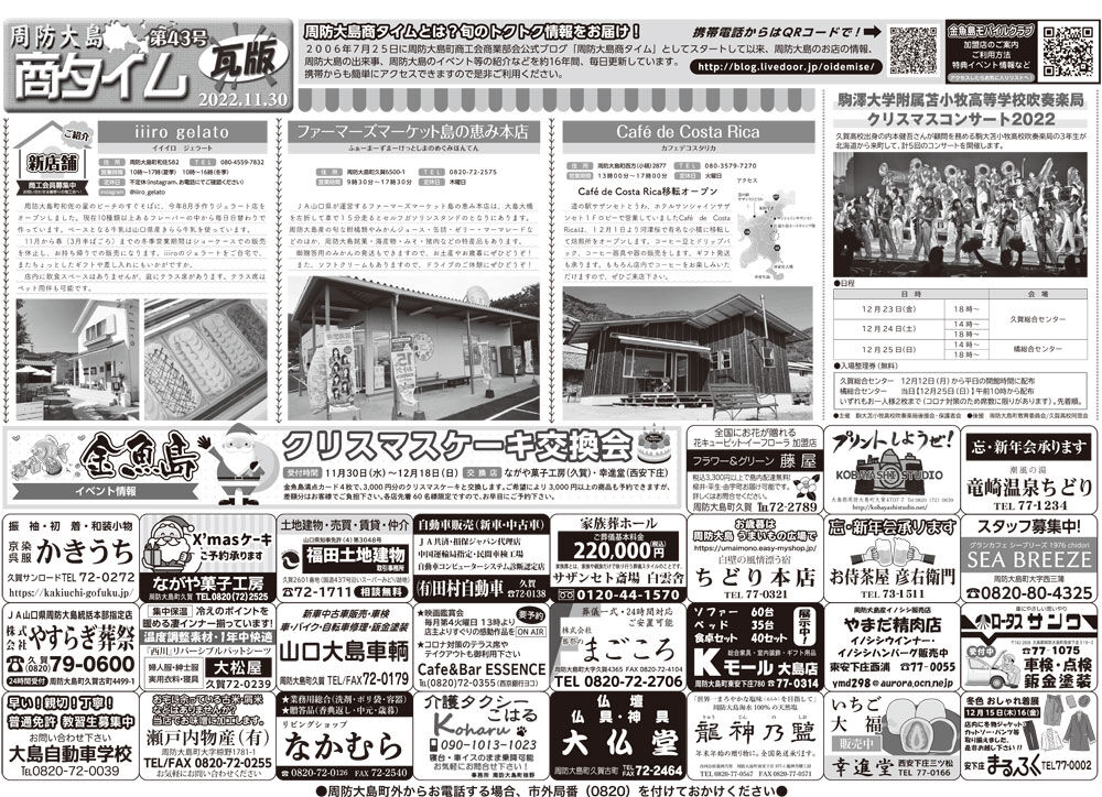 令和4年11月30日朝刊に、周防大島商タイム瓦版第43号を