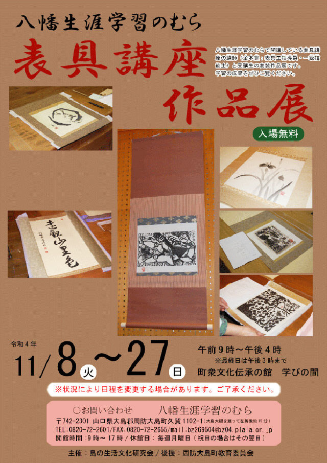 八幡生涯学習のむら「表具講座作品展」のお知らせ