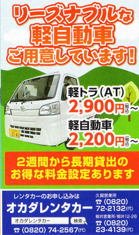 小さい道でも楽々走れる軽自動車のレンタルもお気軽にぜひどうぞ!