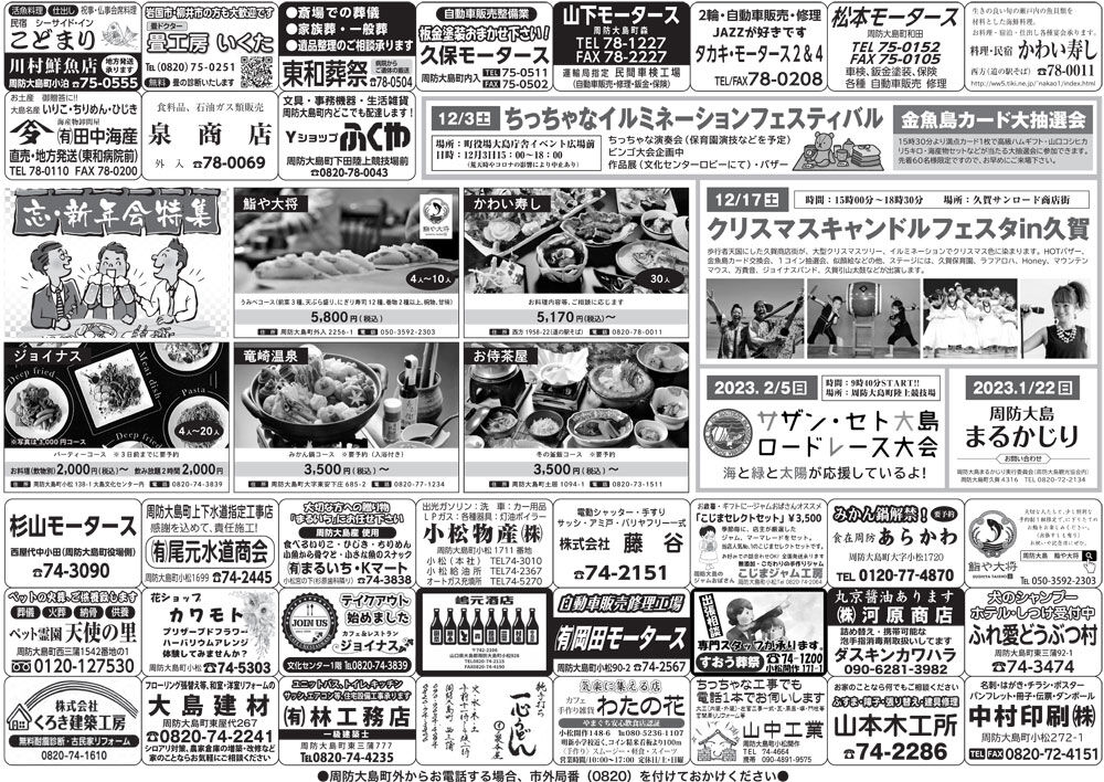 (問)周防大島町商工会大島支所 TEL(0820)74−2012 Web