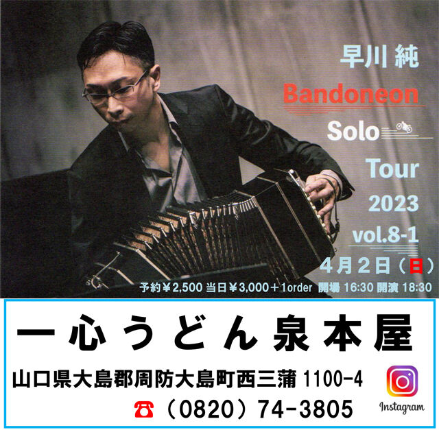 令和5年4月2日(日)18時30分より世界的バンドネオン奏者