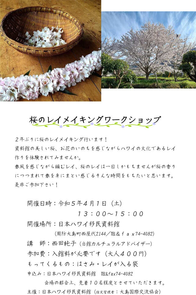 日本ハワイ移民資料館「桜のレイメイキングワークショップ」のお知らせ