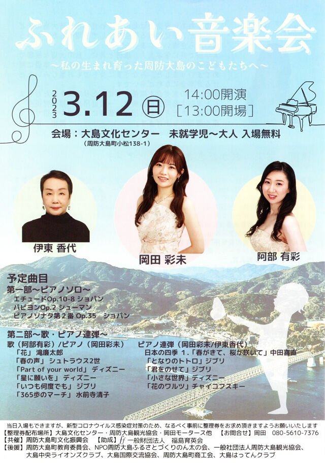 周防大島町出身のピアニスト岡田彩未さんが、ふるさと周防大島で
