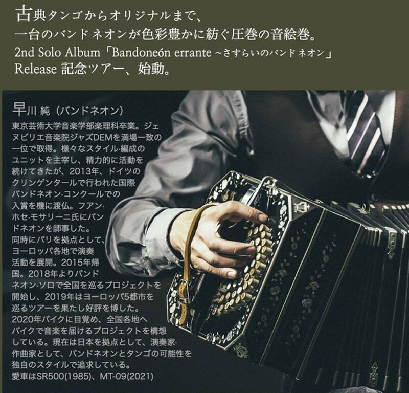 バンドネオン奏者の早川純さんは、東京芸大を卒業後、