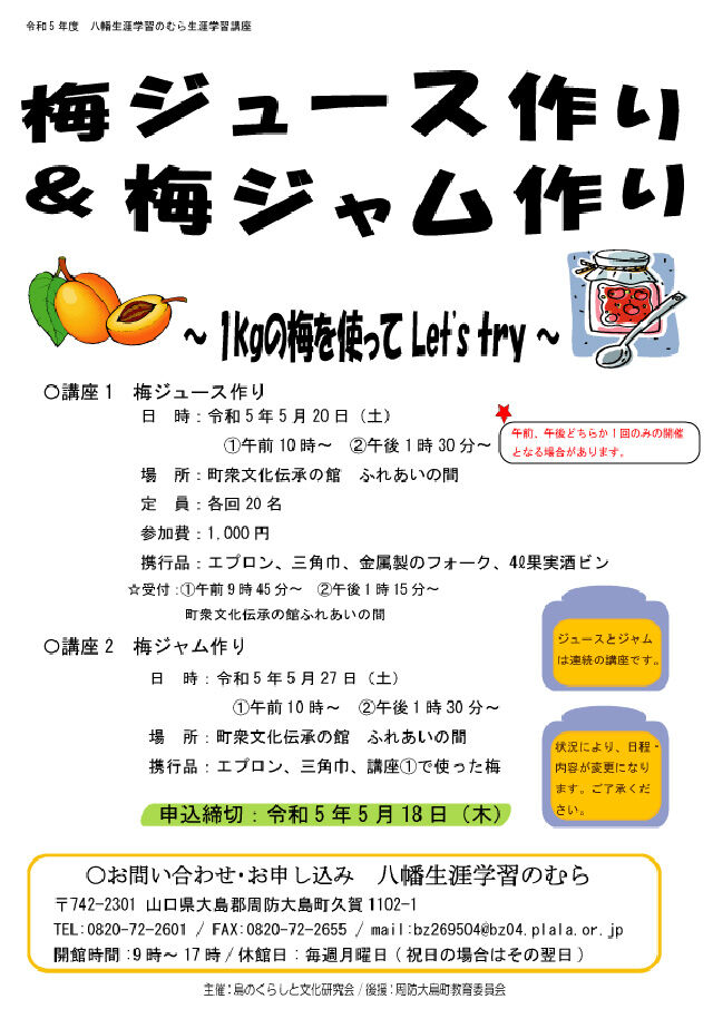 (問)周防大島町商工会大島支所 TEL(0820)74−2012