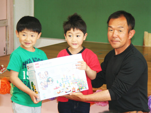 久賀保育園を訪問して、園児さんに直接贈呈しました。
