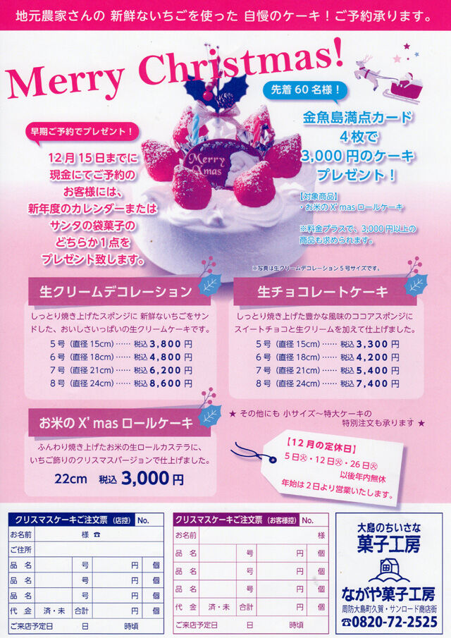 クリスマスケーキは、ながや菓子工房
