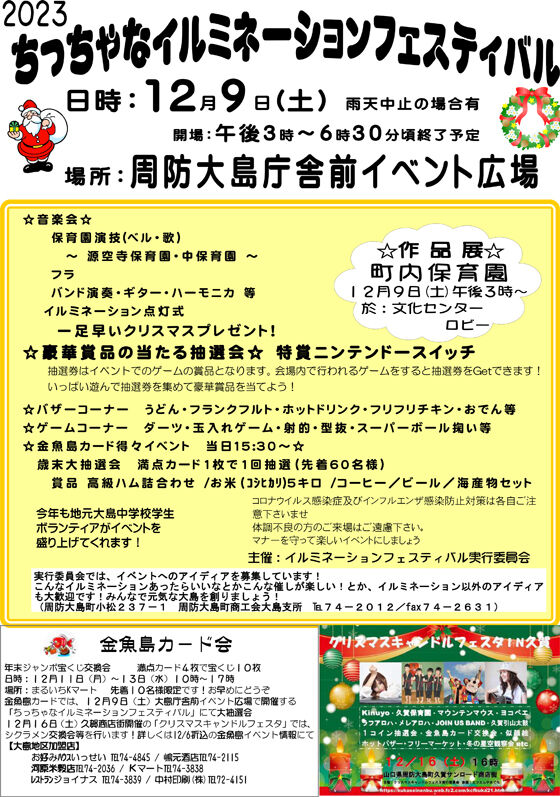 周防大島町商工会大島支所では、令和5年12月9日(土)15時から