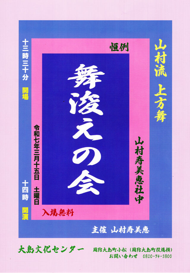 3月29日(土)14時から、八幡生涯学習のむら(久賀)にて開催されます。