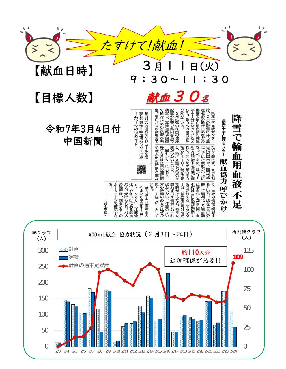 降雪の影響で、輸血用血液が不足している今こそお願いいたします。