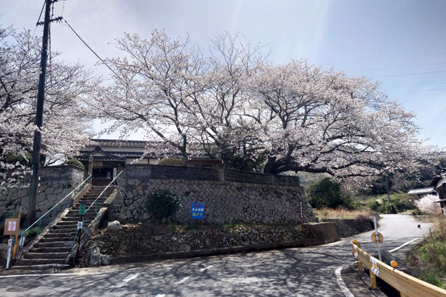 ある周防大島町久賀流田の円明寺 満開の桜です。