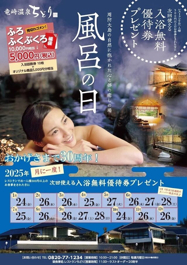 お帰りの際には、周防大島の竜崎温泉で温まって下さい!