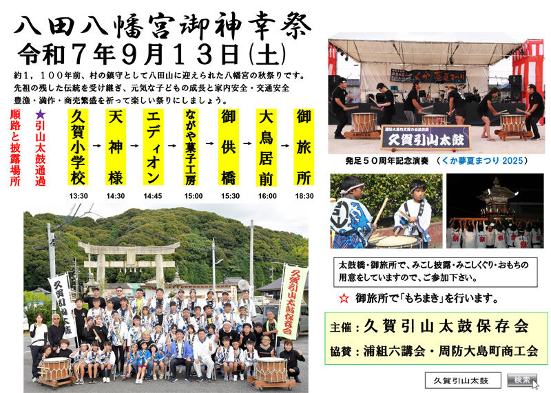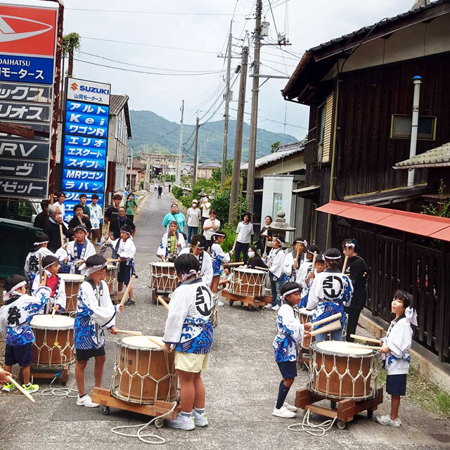 昭和50年に久賀町商工会青年部の有志が引山太鼓を復活して、