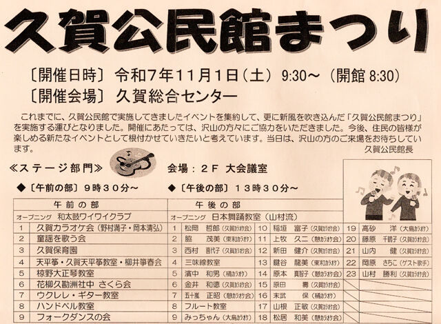 第1回 久賀公民館まつりが、令和7年11月1日(土)に