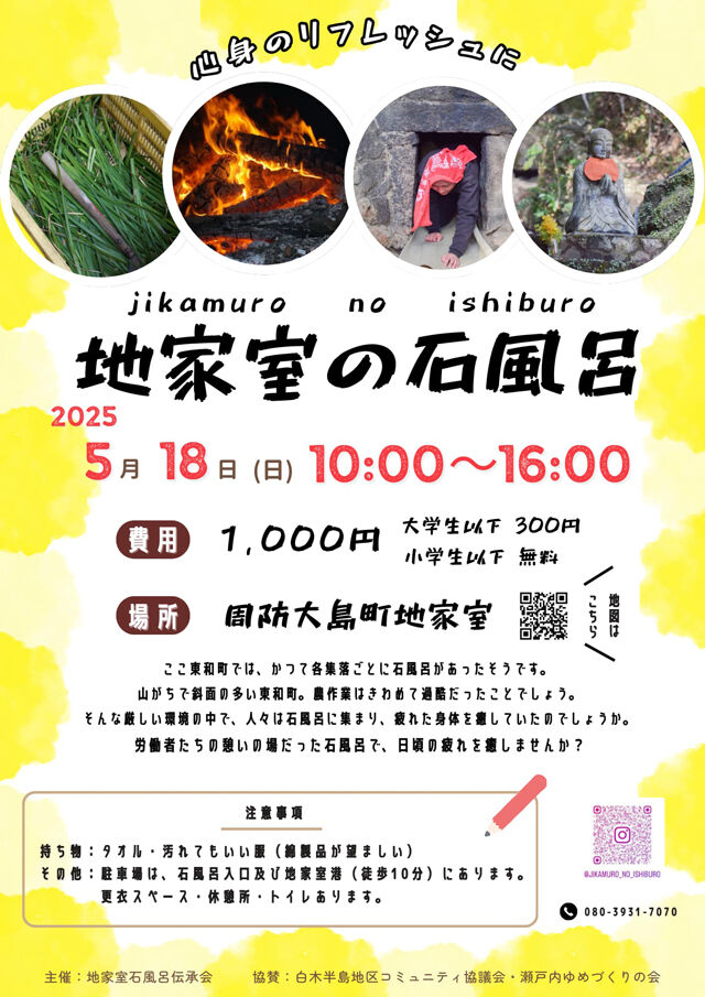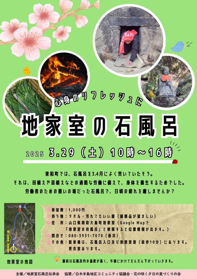 地家室の石風呂に、3月29日(土)10時から16時まで