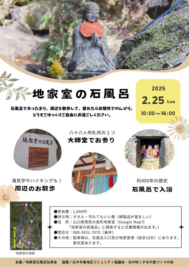地家室の石風呂に、2月25日(火)10時から16時まで