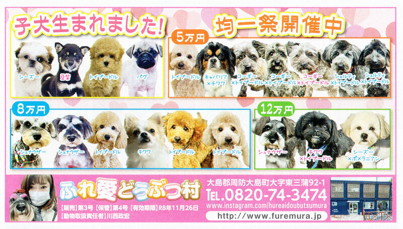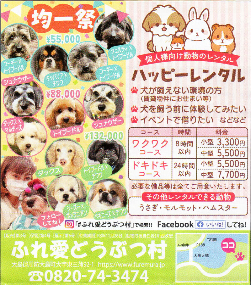 「ふれ愛どうぶつ村」ワンちゃんに会いに来て下さい