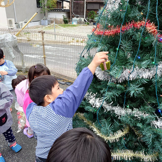 久賀保育園の園児さんたちが、ツリーに、オーナメントを飾ってくれました。