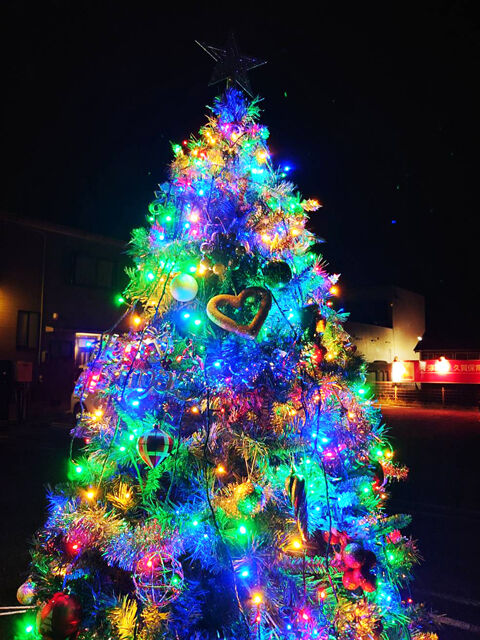 それに先立って、今年も久賀商店街に大型クリスマスツリーを設置しました。