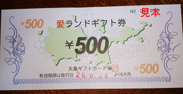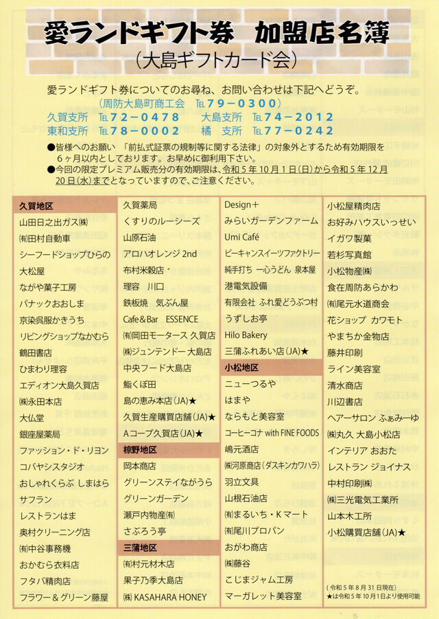 大島ギフトカード会は、周防大島町商工会の商品券「愛ランドギフト券」の