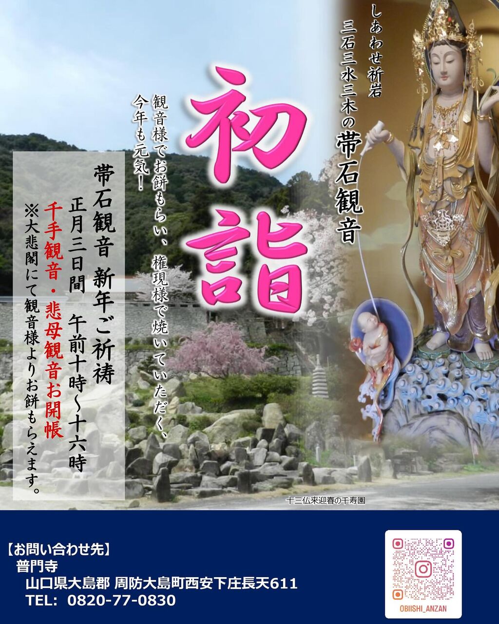 初詣は、周防大島町の帯石観音へご参拝下さい。