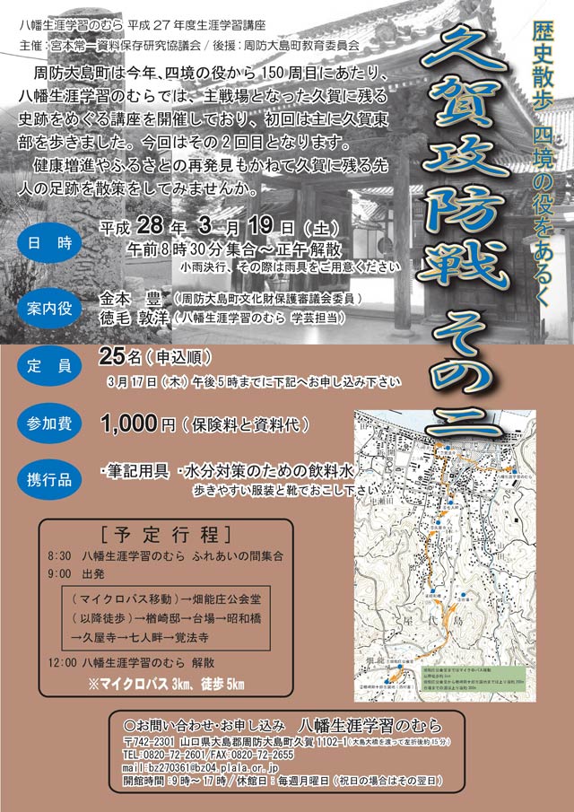 歴史散歩「四境の役を歩く」久賀攻防戦その1を