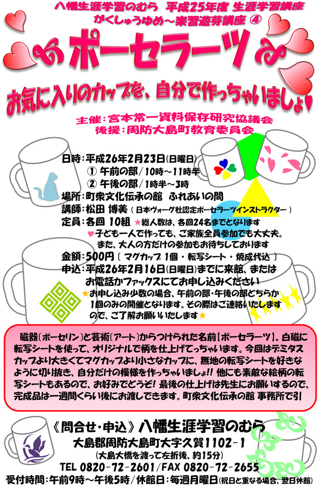 八幡生涯学習のむら「楽習遊芽講座〜ポーセラーツ〜」のお知らせ