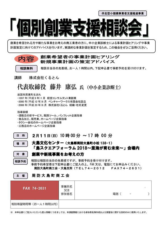 午前10時〜16時まで、周防大島町商工会指導員による起業相談会も