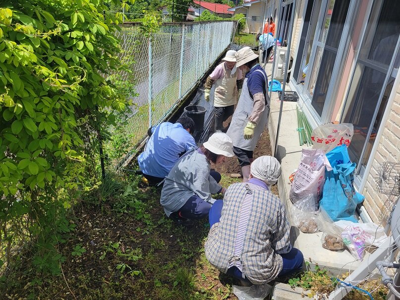 作業開始前、みなで輪になって集まり、握手をして絆を深めるセレモニーが行われました