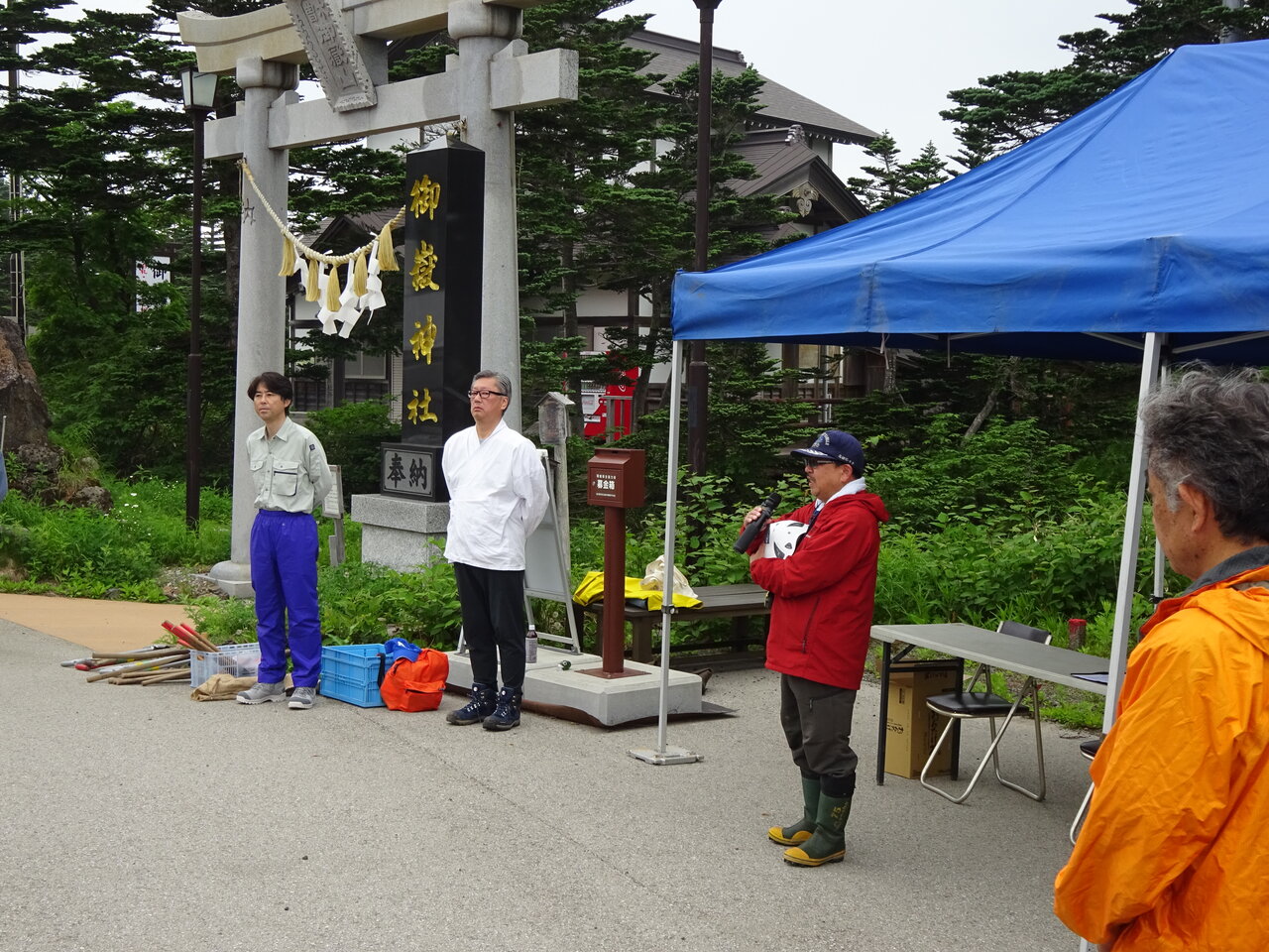 今年の開山式は、天候に恵まれて、時折薄っすらと御嶽山の頂上が姿を見せる中、無事に執り行われました