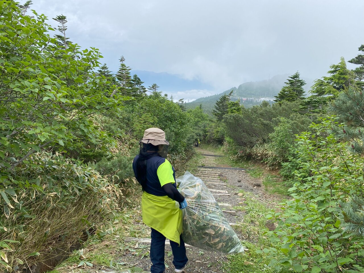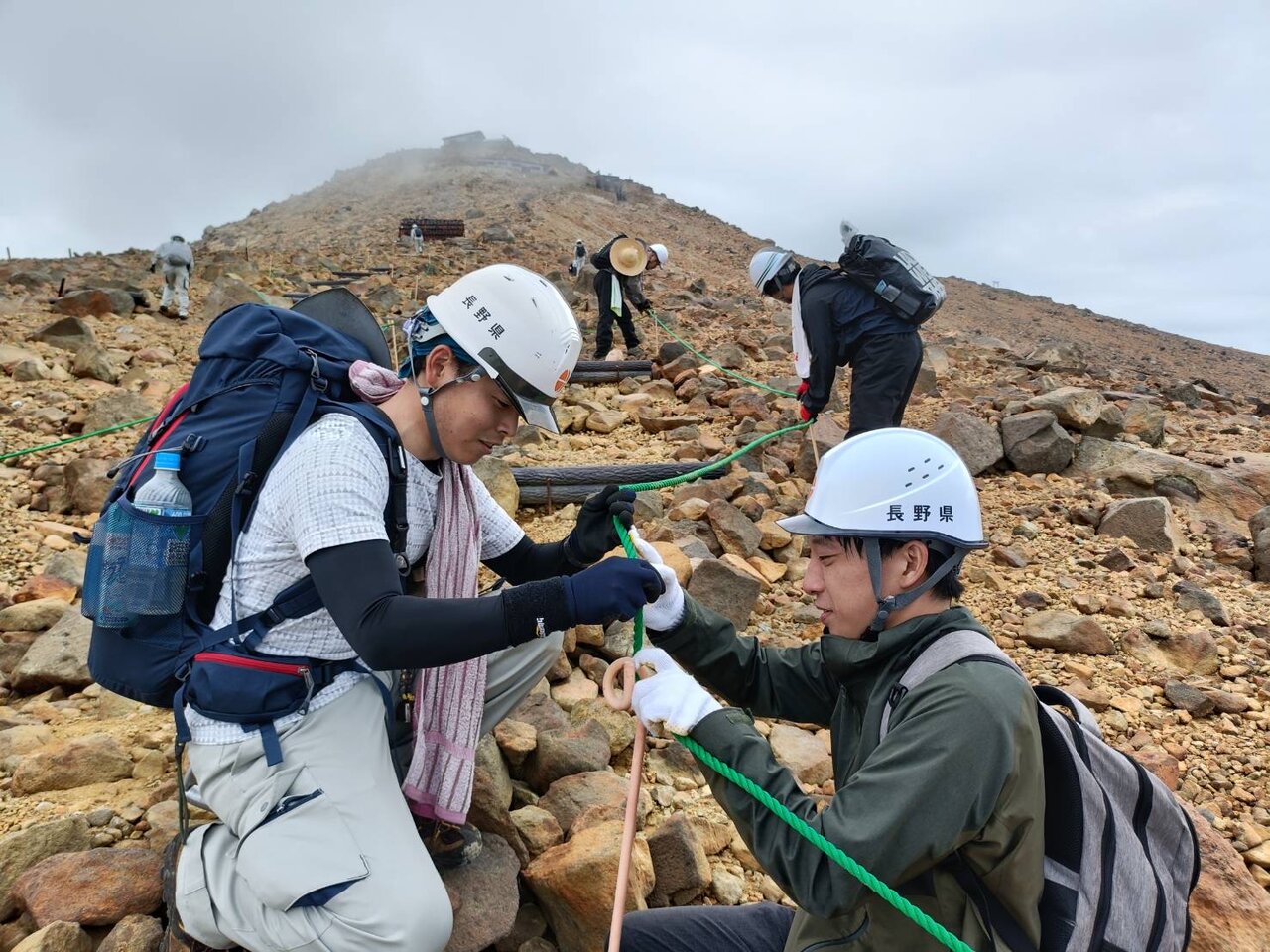 高山植物を大切に守る中、多くの方々に一生懸命作業して頂き、王滝口からの登山道は以前より幅が広く安全になりました。この夏、多くの皆様にご利用いただき、素敵な思い出を作ってもらえたら 嬉しいです