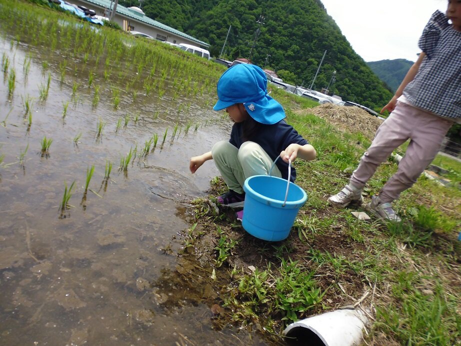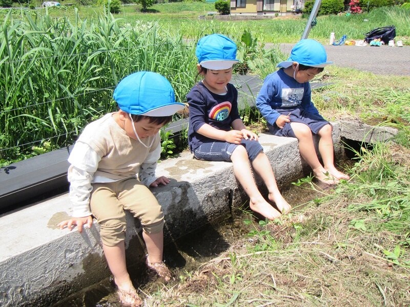 水路の土砂撤去や笹刈りなどを3人一組でおこないます
